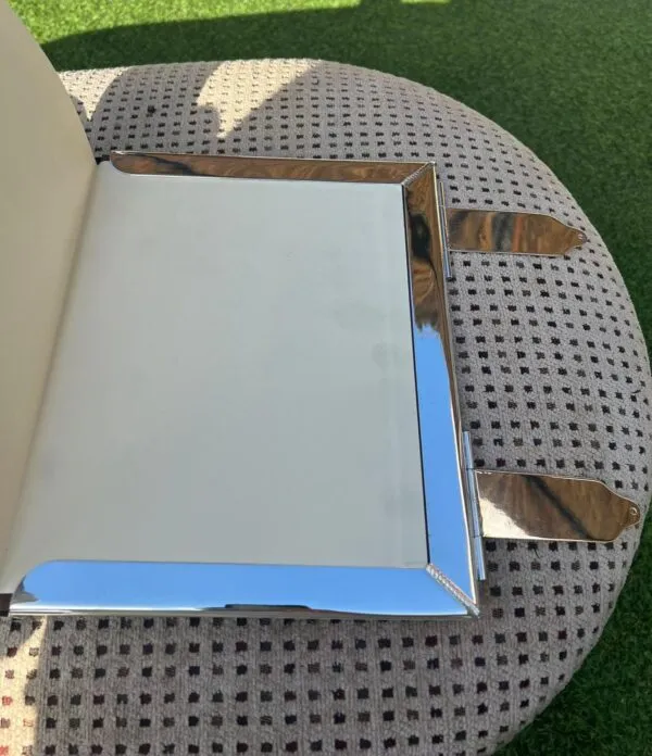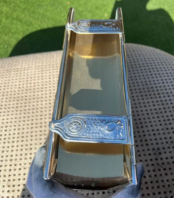 Fabricada en alpaca CON BAÑO DE PLATA y ORO EN LAS ESQUINAS