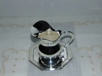Conjunto formado por jarrita y plato octogonal bañados en plata