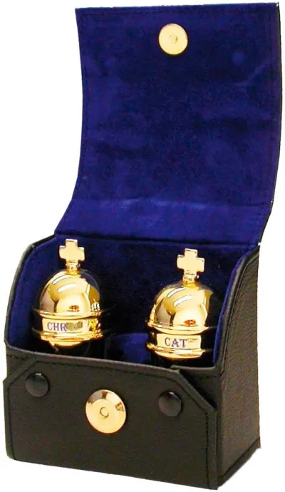 Juego de dos crismeras fabricadas en metal bañada en oro