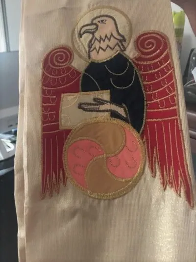 En la iconografía cristiana, cada evangelista se asocia con un símbolo particular; Mateo es representado por un hombre, Marcos por un león, Lucas por un toro y Juan por un águila. Estos símbolos no solo adornan la estola, sino que también refuerzan la singularidad de su mensaje y el papel que desempeñan en los Evangelios.