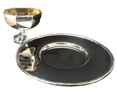 Cáliz dodecagonal de alpaca con baño de plata y baño de oro en el interior de la copa.