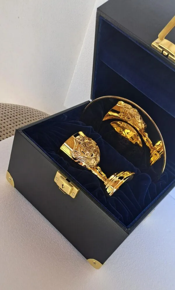 El interior acolchado y forrado en terciopelo no solo protege contra golpes y arañazos, sino que también proporciona un entorno digno para tus elementos litúrgicos. El cierre con llave añade una capa extra de seguridad, ideal para objetos de gran valor espiritual y material.