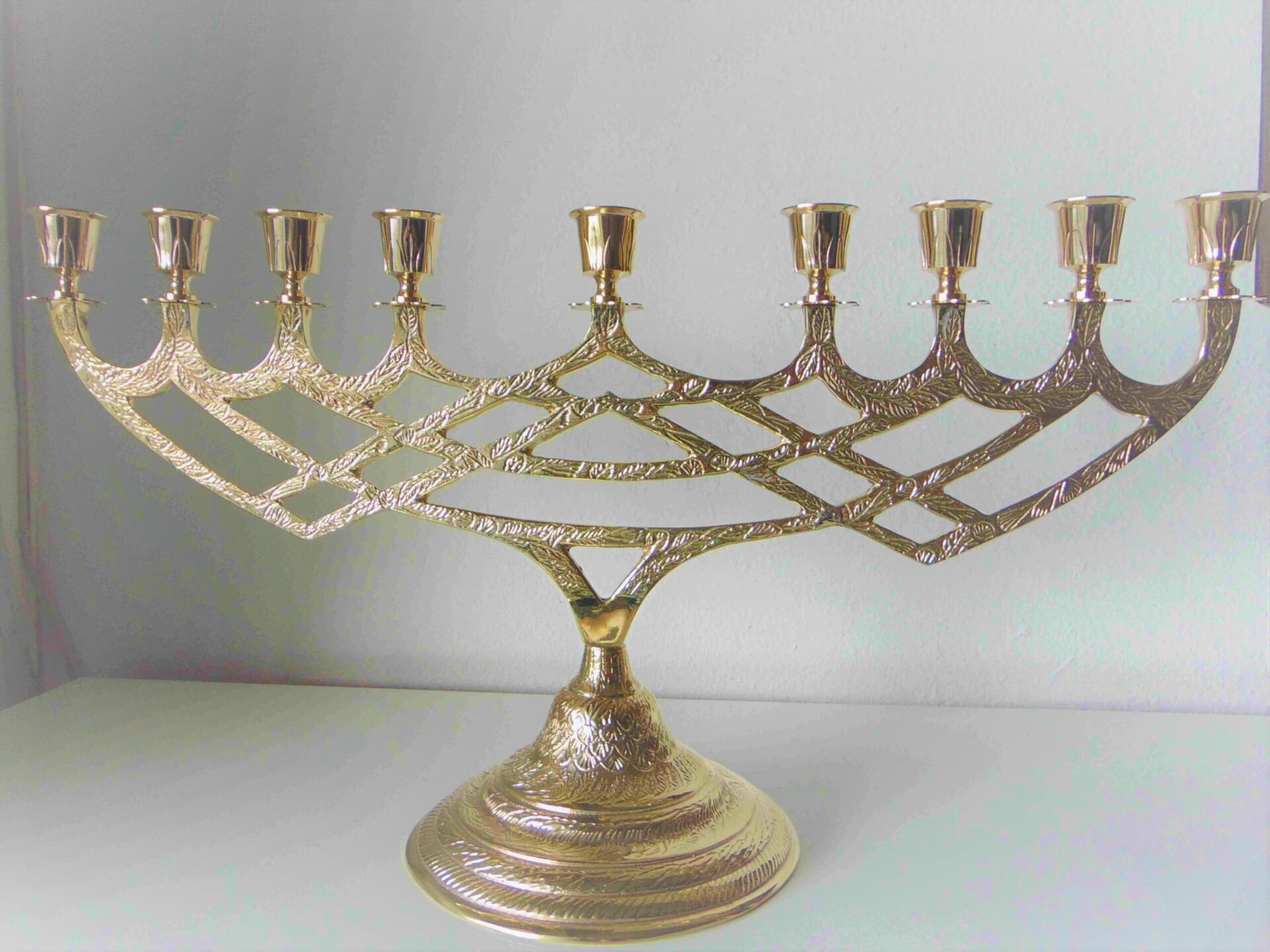 Candelabro de 9 brazos o Menorah en bronce bañada en Oro